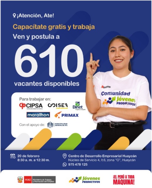 “¡Capacítate gratis y accede a oportunidades laborales! Ven y postula a más de 610 vacantes disponibles.”