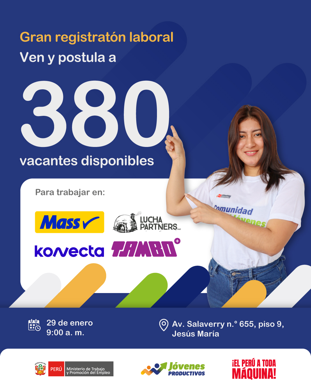 🙋🙋Estimado, te invitamos al proceso de Registratón Laboral de la empresa aliada TIENDAS MASS (MULTIFUNCIONAL), KONECTA (REPRESENTANTE DE CROSSELING), LA LUCHA (AYUDANTE GENERAL MULTIFUNCIONAL) Y TAMBO (COLABORADOR MULTIFUNCIONAL). 380 vacantes.